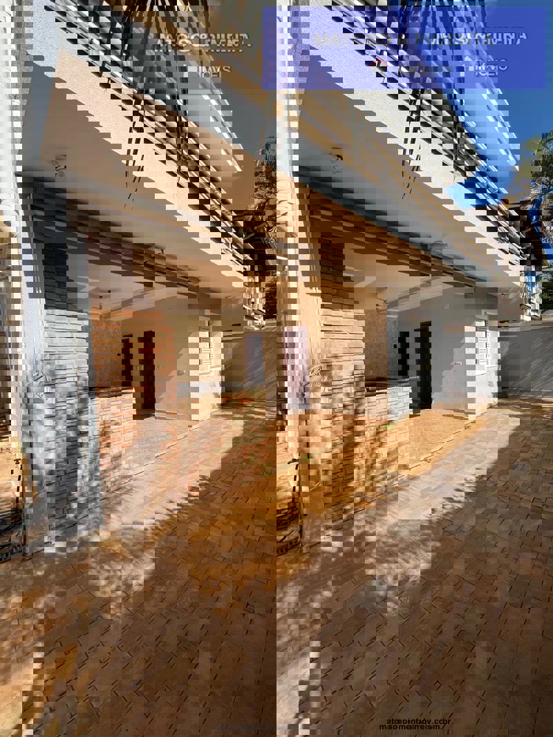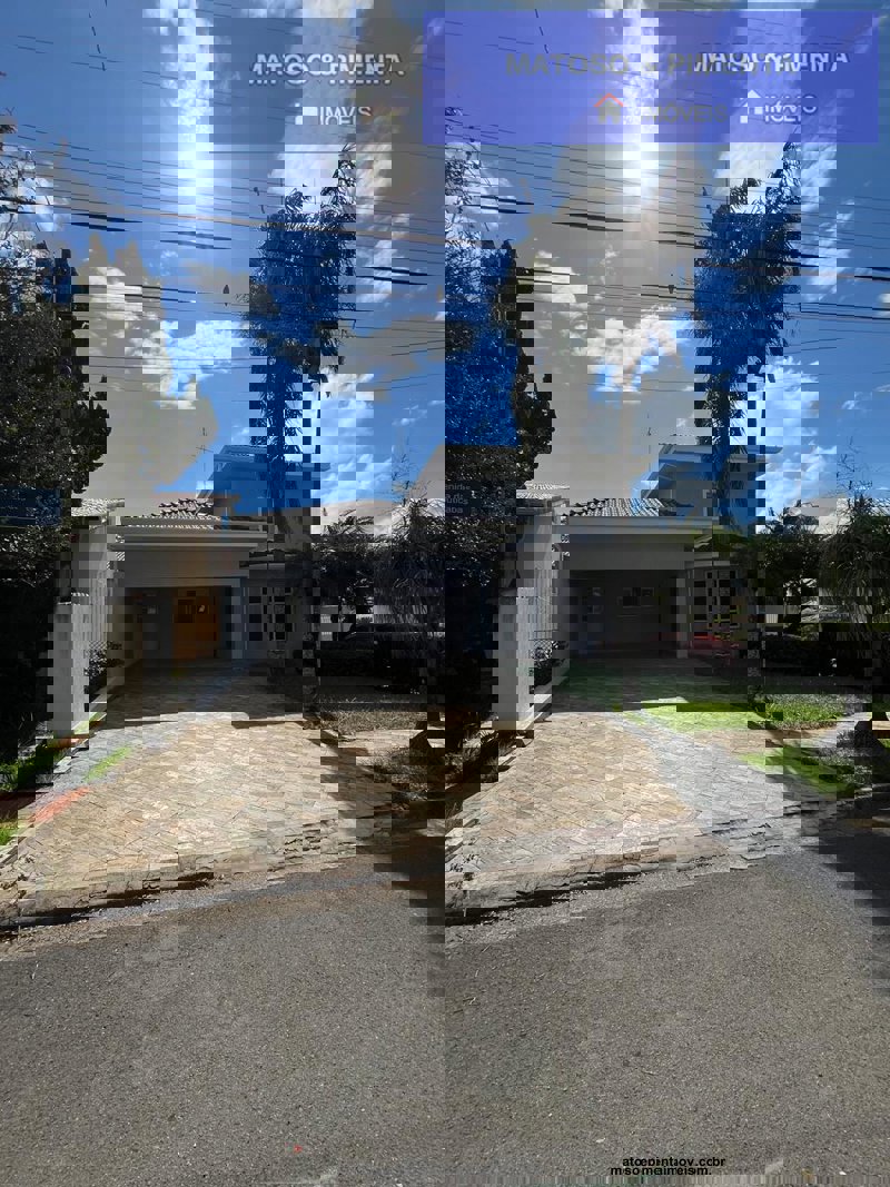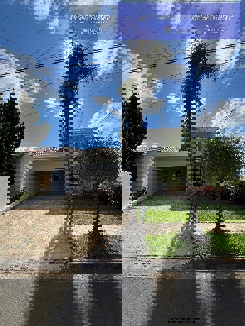 Casa térrea: 3 quartos, sendo 2 suítes; 1 escritório/sala tv; 1 banheiro social; 1 sala de jantar; 1 sala de estar ampla; Cozinha; Área de serviço com despensa; Garagem 2+2